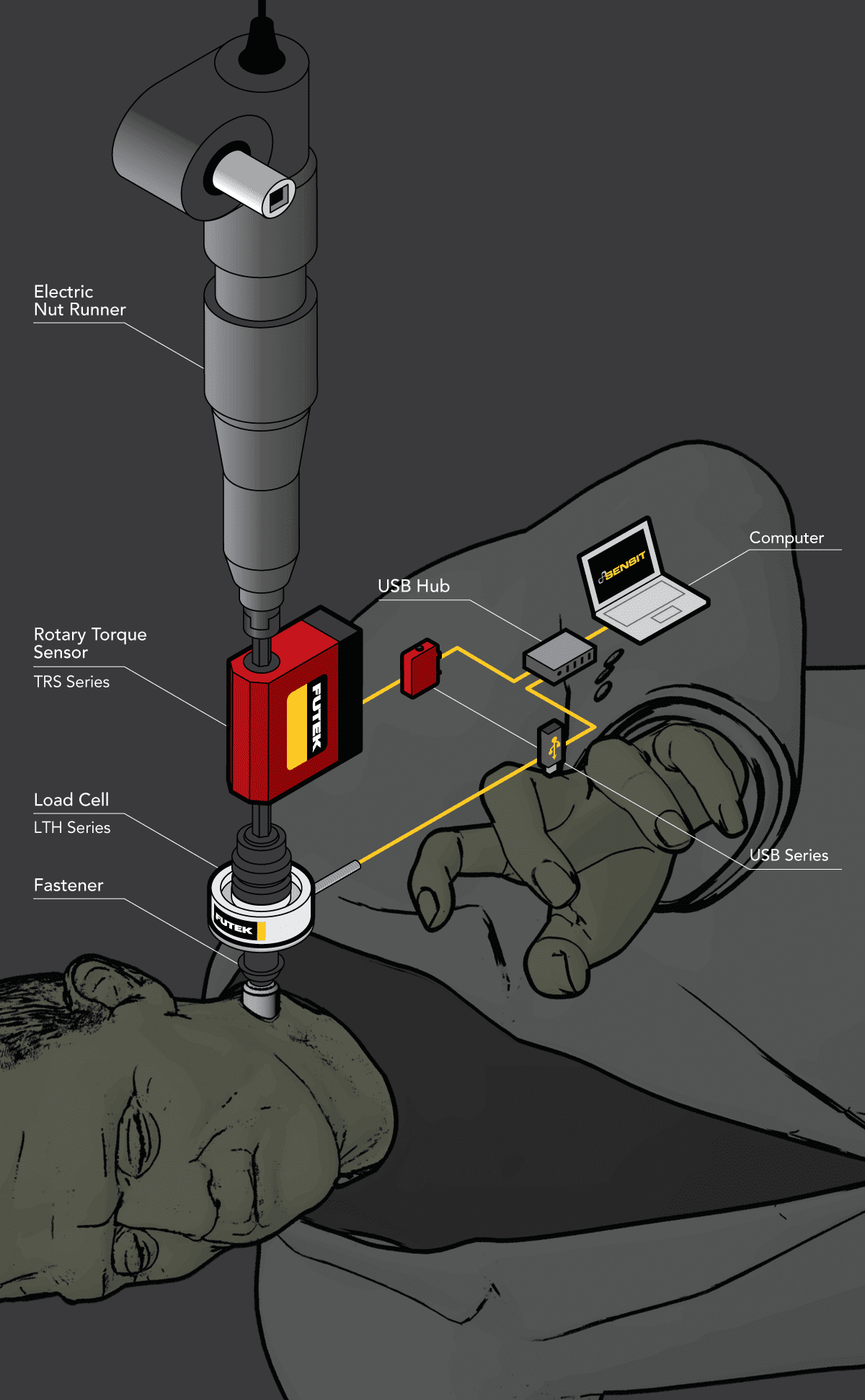 Yet, Frankenstein didn't want to over torque the bolts as well. Thus, he incorporated the use for FUTEK's Donut/Thru-Hole Load Cell to fine-tune this procedure.