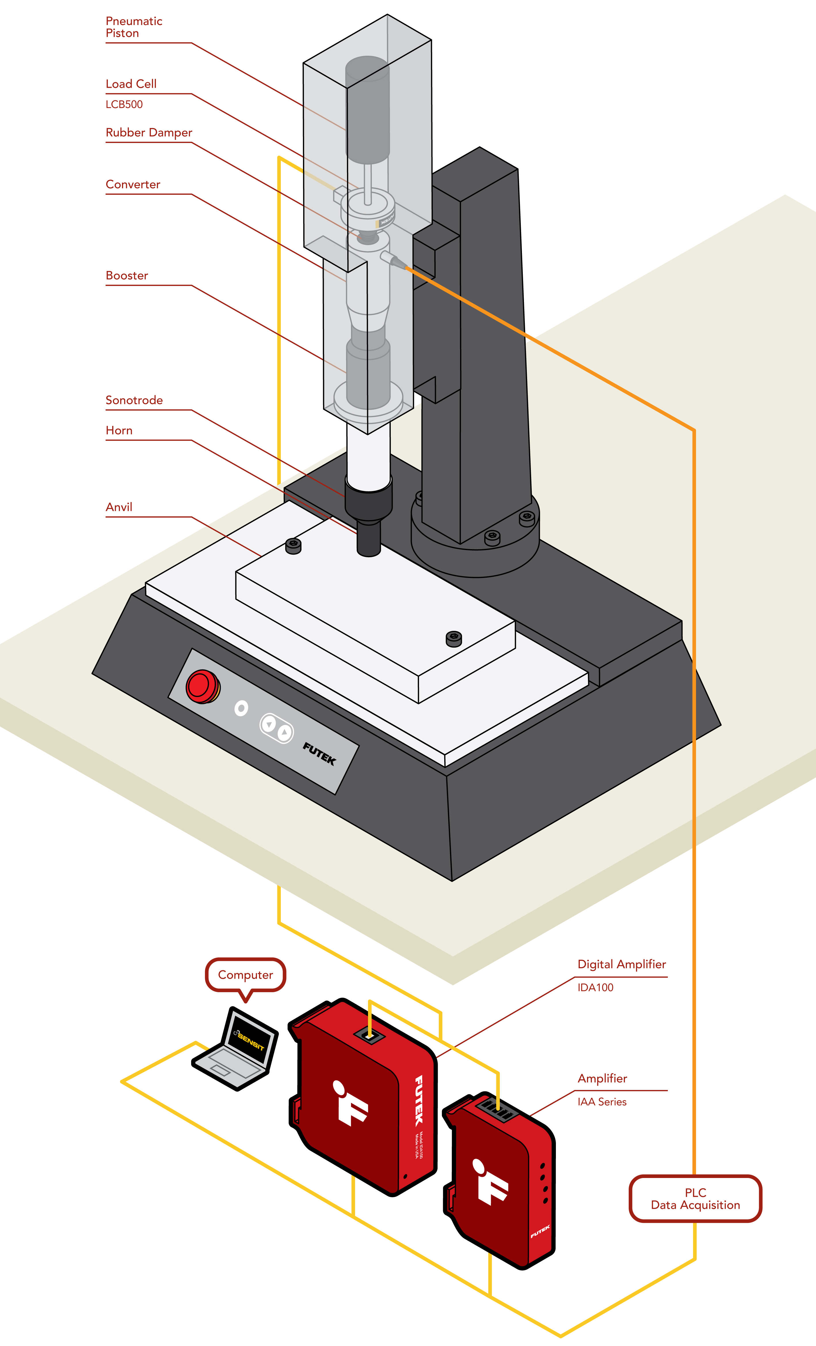 The IAA Series and IDA100 amplify and transmit the load cell signal to the welder's PLC enabling closed loop clamping force control.