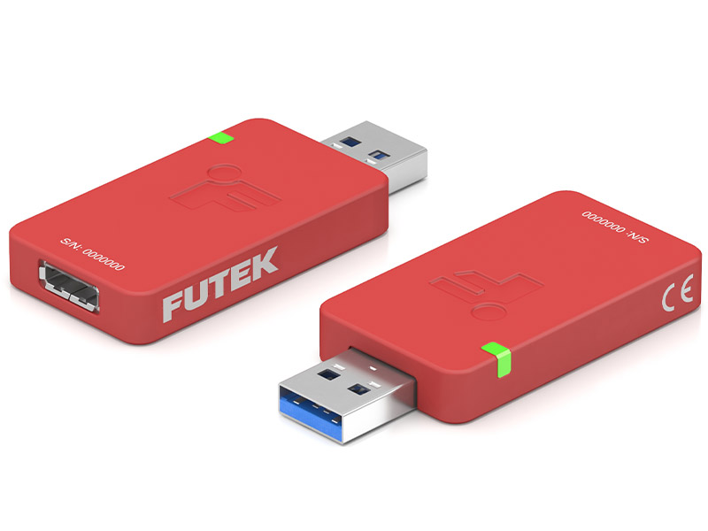 USB225 Pro and USB225 Pro Elite provide live feedback that the sensor is active, connected, and able to perform the measurement through a visual indicator (LED) and through FUTEK SENSIT™ software. The LED, which is placed at the corner of the device to ensure visibility from 180 degrees, signals solid green for normal operating mode and changes to blinking red if it detects any short or open circuits at the bridge.